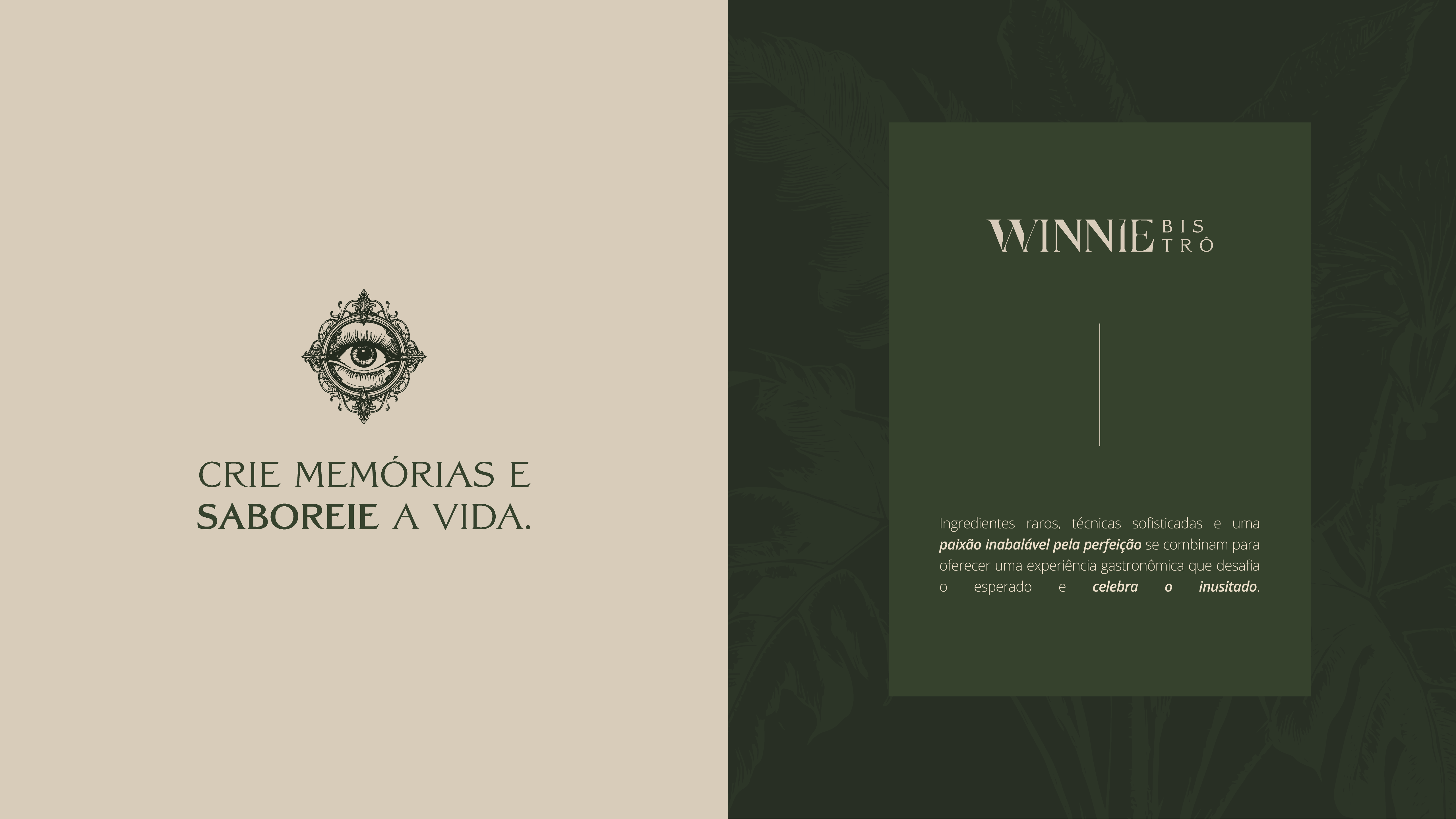O Winnie Bistrô é um restaurante que oferece uma proposta singular de alta gastronomia com identidade própria. Liderado pela Chef Winnie Buzatt, o bistrô se destaca por reinterpretar a culinária contemporânea com ousadia e sofisticação. Cada escolha visual foi pensada para refletir a originalidade da proposta gastronômica da Chef Winnie Buzatt e o ambiente singular que o bistrô oferece. Combinando elementos clássicos e artísticos a uma linguagem visual contemporânea, a identidade se distancia de padrões previsíveis. O ponto de partida foi criar uma tipografia única, desenhada ponto a ponto que reforçasse a percepção de ousadia e provasse que o bistrô está longe de ser mais do mesmo.